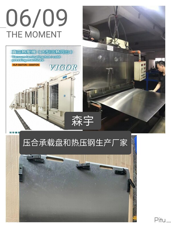 在电子制造领域,压合承载板压机热盘发挥着至关重要的作用。压合承载板压机热盘,是实现高效压合的关键,采用全硬化高韧性钢板,耐高温,不变形,高强度,耐磨且高韧性,其硬度(HRC 40-45),经过特别的热处理工序、高精密度制作、不易翘变形、硬度高,超耐磨,使用寿命长,钢板表面经过特殊的加工工艺:表面无锈蚀、凹陷、凸点;。性价比高,品质稳定; 其优异的导热性能确保热量均匀传递,使线路板在压合过程中受热均匀,从而有效减少气泡和缺陷的产生。其独特的设计和制造工艺,在260°C的环境下,普通钢板因回火温度低,容易变形,翘板,硬度低,易磨损。而我们的钢板反复的冷热压合制程中无变形翘曲、变形和刮伤,即仍然保持高硬度超耐磨性和高韧性,其使用寿命是普通钢板的数倍;保证了在高温高压下的稳定性和耐用性,能够长时间保持精确的温度控制和压力分布。保固期长,品质保证,可提供代工服务。